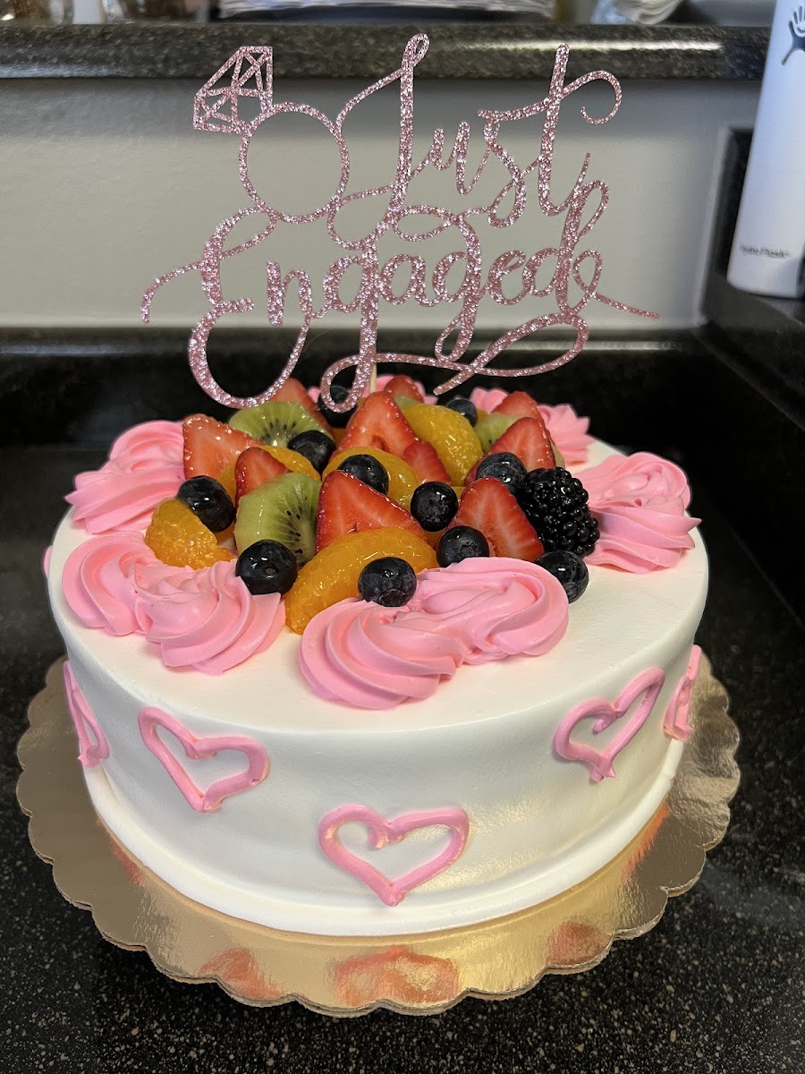 Custom ordered a cake for my friend's engagement party and it was a huge hit! Everyone loved the cake - it was perfectly light, fluffy, and fruity! Will order from here again in the future (note: the topper was not included)