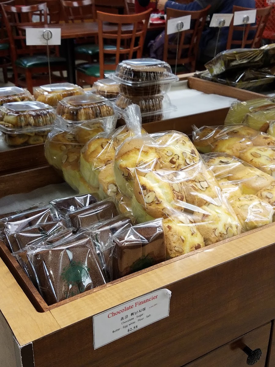 Bakery located on the back of H Mart. They make good bread, cookies and cake. Specialty items like cream donut, chewy sesame bread and peanut butter cookie. My go-to is the thin chocolate cookie with macadamia nuts. Tip: cash only under $5